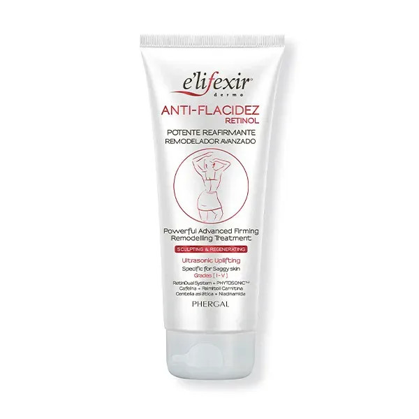 E'LIFEXIR DERMO ANTI - FLACIDEZ es una innovadora crema de tratamiento diseñada para combatir la flacidez cutánea. Su fórmula avanzada, enriquecida con Retinol, promueve la regeneración celular y mejora la elasticidad de la piel, proporcionando un aspecto más firme y tonificado.